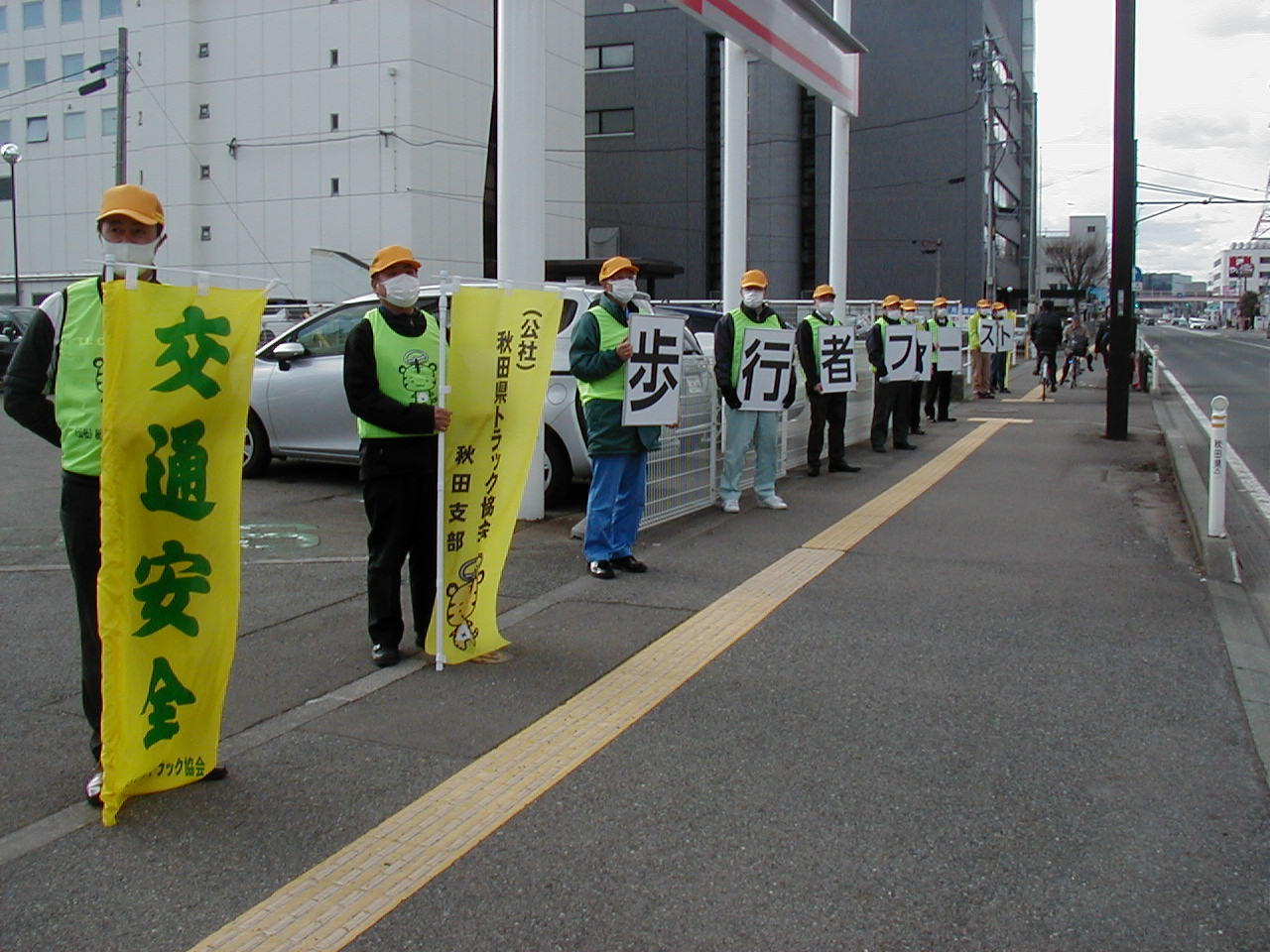 秋の全国交通安全運動に合わせ、大館・北秋田支部では2018年9月27日(木)に大館市の片山南バイパス交差点・プラザ杉の子前交差点の2か所で街頭指導を行いました。参加者は 22名でした。