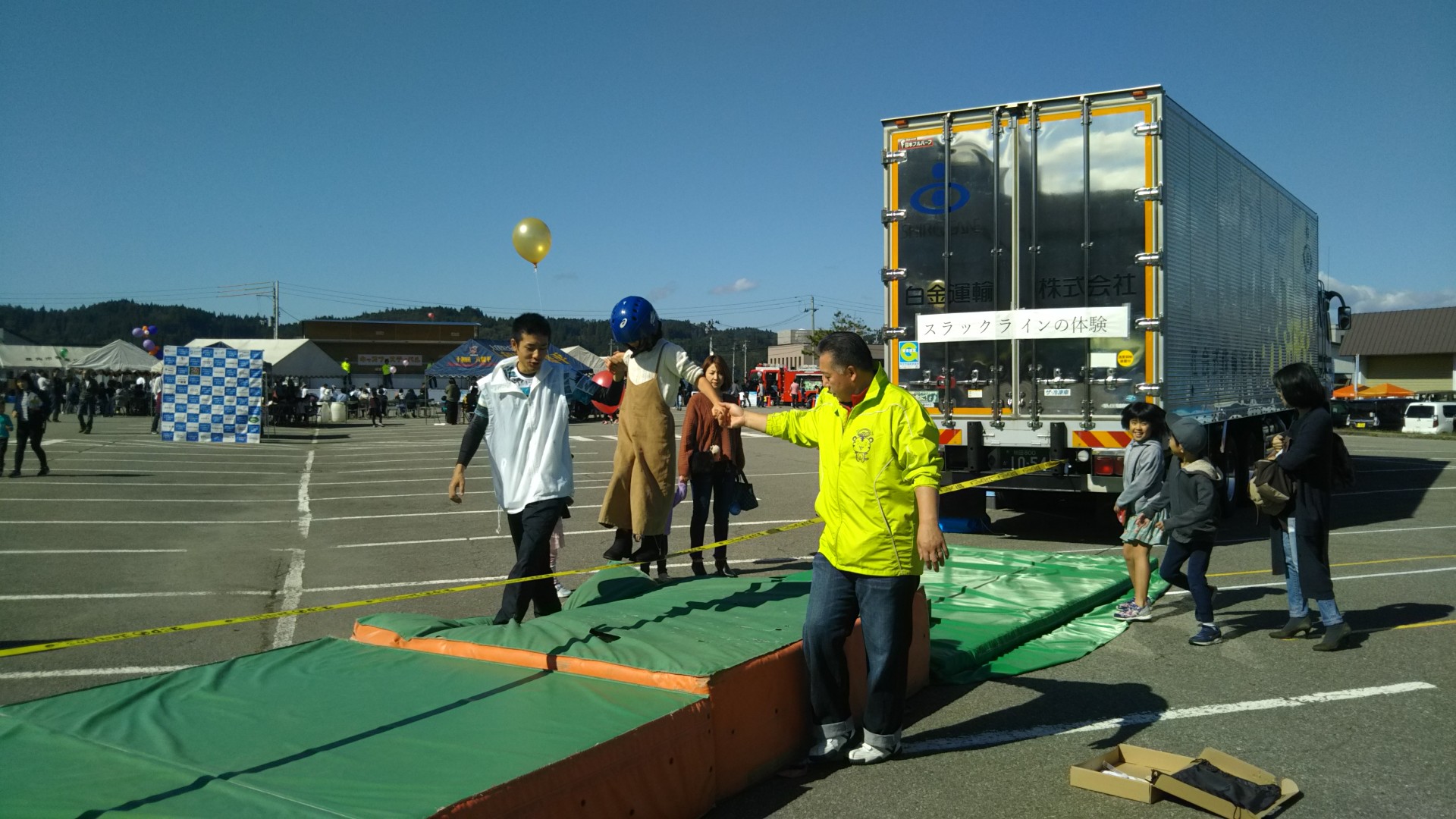 かづの商工会青年部が行っている「キッズフェスティバル」に参加しました。このイベントは、未就学児童から小学生を対象に、普段町でよく目にする働く車に焦点を当て、車を通じて職業観を養うとともに、地域の事業者への理解を深め将来の事業者の育成を目指すために行われているイベントです。